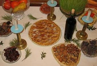 -les fruits secs :figues et raisins secs, amandes, noix et noisettes qui symbolisent les quatre ordres mendiants: Franciscains , Dominicains , Augustins et Carmes.