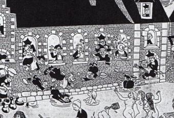 Les grâces, ce sont les blanchisseuses qui protestent et même manifestent contre les puissants Messieurs de la Compagnie de Jésus qui font combler le Canal de l'Abreuvoir où elles lavent leur linge. Les Jésuites faisaient disparaître le canal parce que du réfectoire du Couvent on apercevait certaines baignades impudiques et que certains en perdaient le boire et le manger.Source:VdN .dessin de Cuvelier.