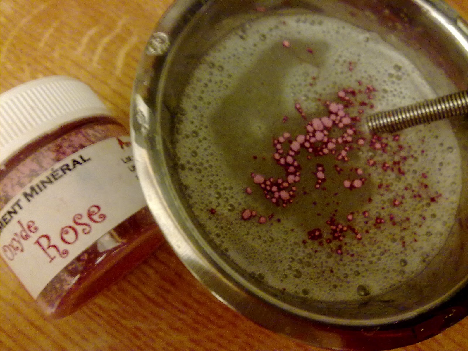 7/ Ca y est mon shampoing a un pH correct ! Une petite touche de fantaisie ? Ajoutez une pincée d'oxyde rose (oule mica/oxyde de votre choix) pour obtenir un beau shampoing coloré :) J’agite bien...