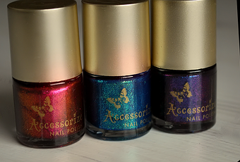 Bonjouuuur, aujourd'hui je suis toute exitée de vous faire connaître (ou pas) un nouveau site que j'ai découvert sur le blog de Lacquerized : Accessorize.com, site britannique. Je n'ai pas pu résister, j'ai acheté trois vernis duochromes, qui sont en fait des "copies" de marques connues et à la mode en ce moment :