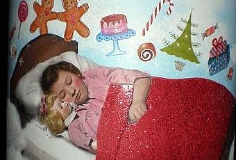 On retrouve dessus une enfant au style rétro endormie dans son lit, entourée de tout les symboles de Noël qui font effectivement rêver les plus petits : sapin, cadeaux, pain d'épice, sucre d'orge, sucreries en tout genre, etc.