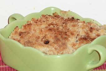Beurrer un grand moule (ou des moules individuels) et y verser les pommes. Recouvrir de la pâte à crumble. Enfourner pendant 40/45 minutes. La pâte doit être dorée.