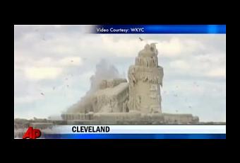 Un phare de l’Ohio est recouvert de glace, le résultat des vagues qui viennent s’écraser sur elle depuis le lac Érié.