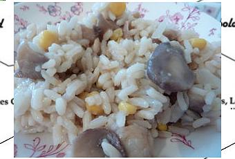 Versez une louche de bouillon sur le riz et ajoutez-en une autre lorsque le liquide est presque absorbé. Poursuivez de cette manière avec le reste du bouillon. Dix minutes avant la fin de la cuisson, ajoutez les champignons et au moment de servir, le maïs égoutté.