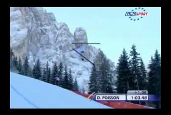 Chute spectaculaire du skieur Francais David Poisson à la descente de Val Gardena.