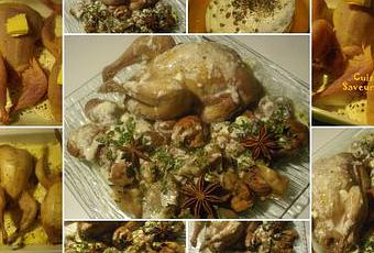 Quand les cailles sont cuites, les enlever du plat et verser la crème dans une casserole en grattant bien pour décoller les sucs. Ajouter la crème restante et réchauffer doucement.
