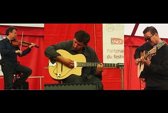 Musicien, compositeur, professeur d'université et joueur de banjo il connait et aime Marseille (malgré tout ce que j'en ai dit hier...) et revient régulièrement parmi les Phocéens. Parmi Jazzmen le contact se fait et le voilà en concert avec Alert O Jazz. cette formation est à la base un trio (violon, guitare, basse acoustique) qui s'élargit selon ses besoins et les occasions. Au violon, c'est Stéphane, profondément influencé par le manouche et l'improvisation, à la guitare s'est Axel qui se revendique autant de Beethoven que de Towner ou Baden Powell et à la guitare et/ou à la basse on entend Raymond, lui aussi venu du classique avant d'adopter le manouche 'alerto-jazzien". A ces trois compères se joint Marc pour ajouter sa contrebasse et/ou son saxo.
