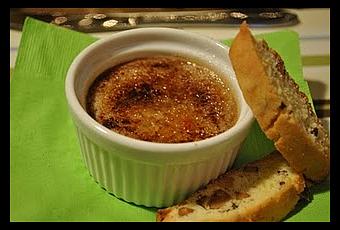 Crème brûlée au chocolat au lait et biscottis à l'orange et aux amandes
