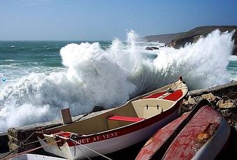 Photo prise un jour de tempête. Plogoff est une commune du Finistère, à l'extrémité du Cap Sizun (canton de Pont-Croix), limitrophe de Primelin et de Cléden-Cap-Sizun.