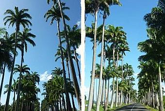 Cette double rangé de palmiers royaux fut plantée vers 1850 et depuis, malgré les cyclones successifs qui ne manquent pas d'en décapiter quelques uns à chaque passage, l'allée est toujours aussi majestueuse.