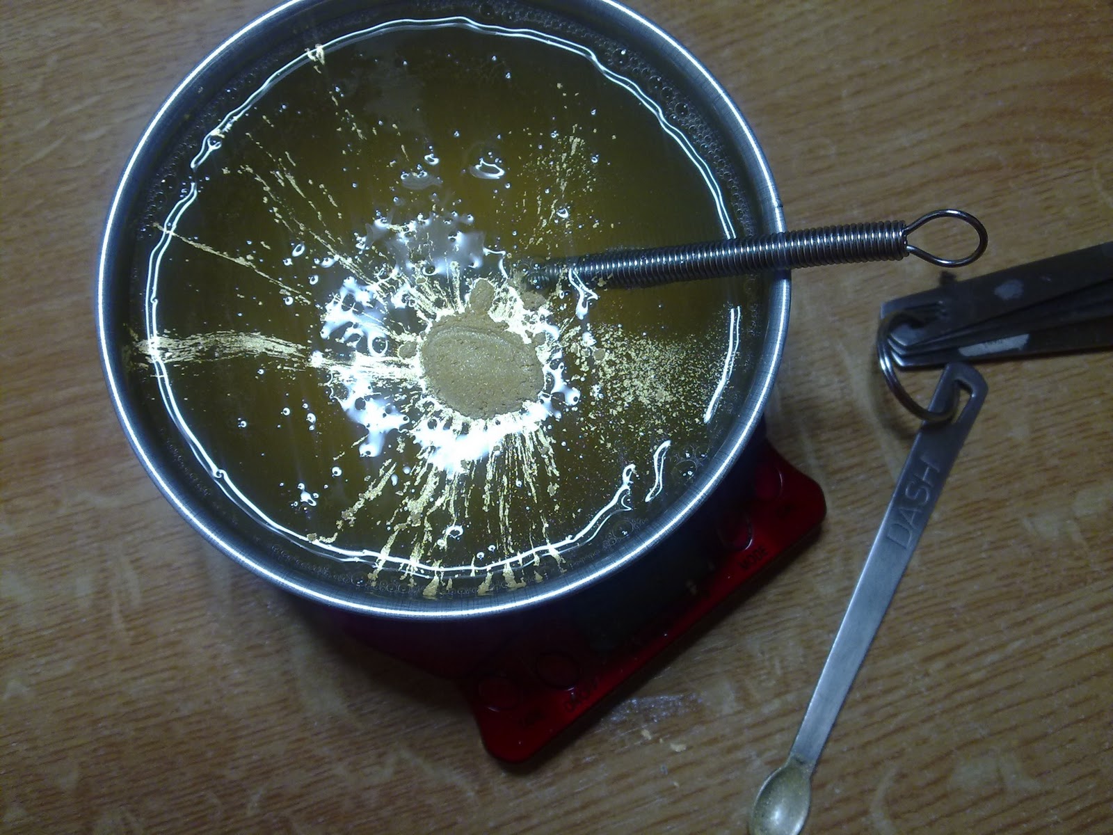 5/ Et là j'ajoute la petite touche de magie ; une belle cuillère DASH de mica or ! (photo avant mélange, puis après)
