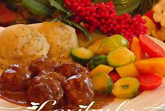7)Ajouter les boulettes au fond de veau et amener à ébullition. Couvrir et cuire au four à 350 °F (180 °C) pendant 30 minutes.