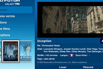 L’interface graphique est adaptée à l’affichage sur la Galaxy Tab. Ainsi, on navigue facilement entre les rubriques et les affiches des films que l’on peut faire glisser.