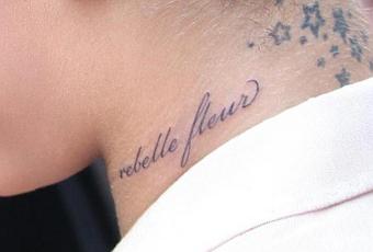 Inspirée par son tatouage, Rihanna lancera son propre parfum Reb’l Fleur (euh…Fleur Rebelle normalement non?) en Février prochain chez Parlux Fragaces. Le parfum sera à base de Violette, Rose, Hibiscus et Noix de Coco pour faire un petit clin d’oeil à ses racines. Le flacon aura la forme d’un talon haut orné d’un ruban de soie et d’un anneau en or.