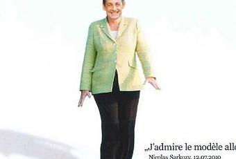 Cet assemblage photo est accompagné d'un extrait d'un discours prononcé par Nicolas Sarkozy le 12 juillet : « J'admire le modèle allemand. » A ce point-là !? A la place de Carla Bruni, je serais inquiet !!!