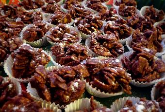 Répartissez la préparation dans des petites caissettes en papier et laissez refroidir les roses des sables 1 heure au réfrigérateur. Saupoudrez de sucre glace avant de les servir.