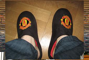 Malgré de gros ennuis de connexion, je m'en serais voulu de ne pas souhaiter un Joyeux Noël à tous les lecteurs du Théâtre des Rêves. Que vous soyez fans inconditionnels de mon "travail" ou simples passants, je vous souhaite le meilleur. Et en attendant, espérons-le, de grandes réjouissances footballistiques dans les mois à venir, j'espère que vous aurez été aussi gâtés que moi, au moment de déballer vos cadeaux. En plus de ces magnifiques pantoufles ultra confortables, je vais pouvoir me sécher au sortir de la douche post-entraînement dans une magnifique serviette de bain estampillée MU. Et avant cela, j'aurai dû retirer mon beau short blanc, le même que porteront mes idoles demain après-midi. Merci à ma petite Maman Noël pour ces jolis présents... (Dommage que ce soit pour la poche de tonton Glaz')