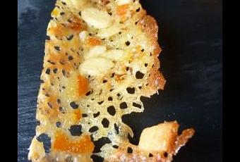 Des tuiles tout en dentelles, au goût d’amandes et d’oranges. Un concentré de bonheur craquant pour accompagner un nougat glacé, décorer une assiette de mousse au chocolat ou juste à grignoter au café.