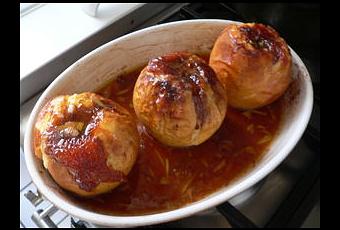Mélanger 50g de sucre en poudre (pour 3 pommes) avec trois belles cuillerées à café de cannelle en poudre. Verser la moitié de ce mélange dans les trous de pommes, puis enfoncer une noisette de beurre, puis enfin une cuillerée à café de confiture d'abricots. Pas d'importance si elle déborde un peu. Saupoudrer le reste du sucre et de la cannelle sur les pommes et dans le fond du plat.
