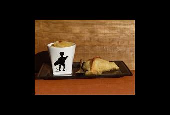 Présentez votre dessert gourmand sur une assiette à café gourmand REVOL : avec une tasse à café détournée en coupelle de compote et le douillon à côté… rajoutez une pointe de caramel sur la compote !