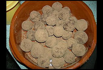 Puis roulez en petite boules et roulez-les dans le cacao amer