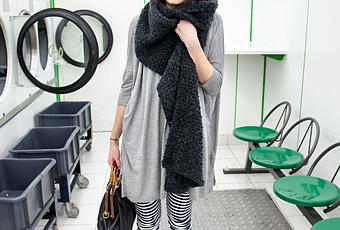 Pauline est aussi une amie. Après avoir pris un café, on a profité d'un lavomatic déserté pour immortaliser son look du jour (et oui, Pauline ose les Birkenstock avec chaussettes !).