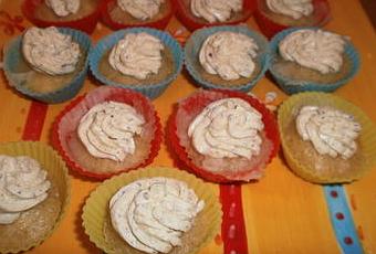 Mélanger le St Morêt et le pesto de pistaches, et dresser vos cupcakes à l'aide d'une poche à douille déposer la préparation au pesto par dessus. Cette étape peut être fait à l'avance du moment où vous les entreposer ensuite au frigo.