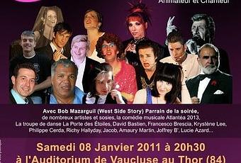 Seront présent à cette soirée présentée par Phil Kena animateur et chanteur: - Bob Mazarguil danseur de la Comédie Musicale "West Side Story" et parrain de ce gala - Nos parrains, Francesco Brescia sosie de Sean Connery et Joffrey B' chanteur Pop/Rock - Lucie Azard notre marraine de cœur et rockeuse dans l'âme et membre des Brid'jets Rock - Richy Hallyday sosie de Johnny Hallyday (Champion de France des sosies) - Céline Mélano chanteuse de la "Comédie Musicale Atlantéa 2013" - Jacob l'humoriste - Krystène Lee sosie de Mylène Farmer - Julien Zaïna chanteur de la "Comédie Musicale Atlantéa 2013" - La porte aux étoiles troupe de danseuses - Mathilde Chardon chanteuse et interprète de l'hymne de l'association "Une Chanson Pour Marion" - Notre partenaire principal La Comédie Musicale Atlantéa 2013 - David Bastien sosie de Patrick Sébastien Plus de 3h de show riche en surprises, dans un espace des plus convivial relayé par différents médias ( Presse et Tv) pour le plaisir de tous mêlant, chant, danse, humour et émotion.