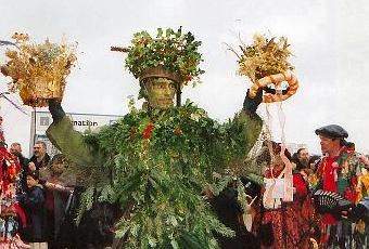 En photo : le Holly Man, prêt à couronner King Bean et Queen Pea