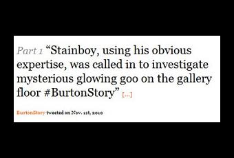 On peut suivre l’histoire sur le site dédié burtonstory.com qui a été finalisé par un 88ème tweet le 6 décembre.