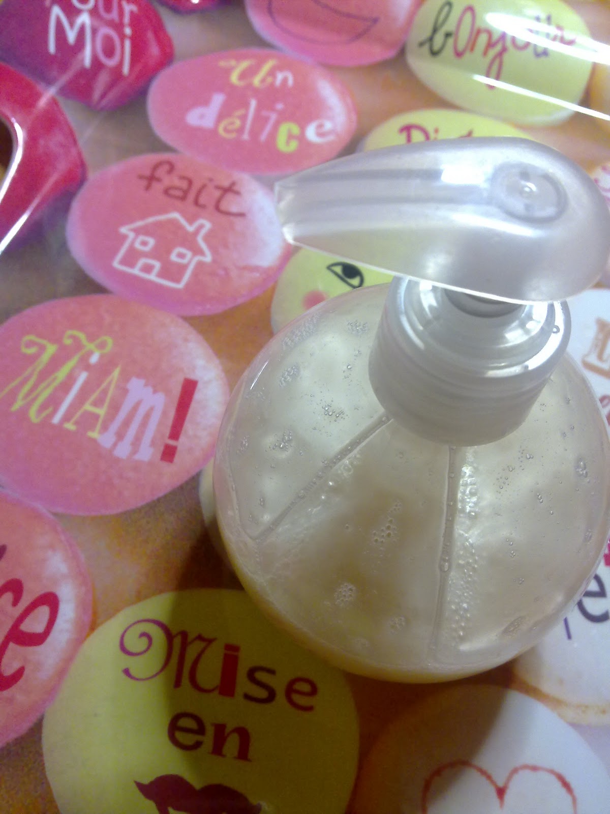 12/ Etape finale : transvaser le shampoing dans le flacon... sans trop en verser à côté (cf photo !!! Prise en flagrant délit de versage à côté, hihihi ! mais je vous mets au défi de faire mieux tout en vous prenant en photo ! )