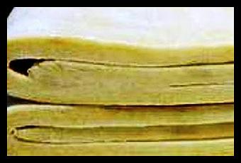 3) Versez ce liquide dans le puit et mélangez rapidement du bout des doigts. Formez une boule, fendez-la en croix à l’aide d’un couteau. Emballez cette pâte dans du film transparent et laissez-la au réfrigérateur ½ heure. Cette pâte s’appelle la détrempe.