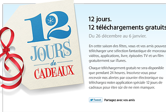Depuis le 26 Décembre 2010, chaque utilisateur de l’application iTunes 12 jours de cadeaux obtiendra un téléchargement gratuit par jour et ce jusqu’au 6 janvier. Retrouvez le cadeau du jour dans la suite de l’article.