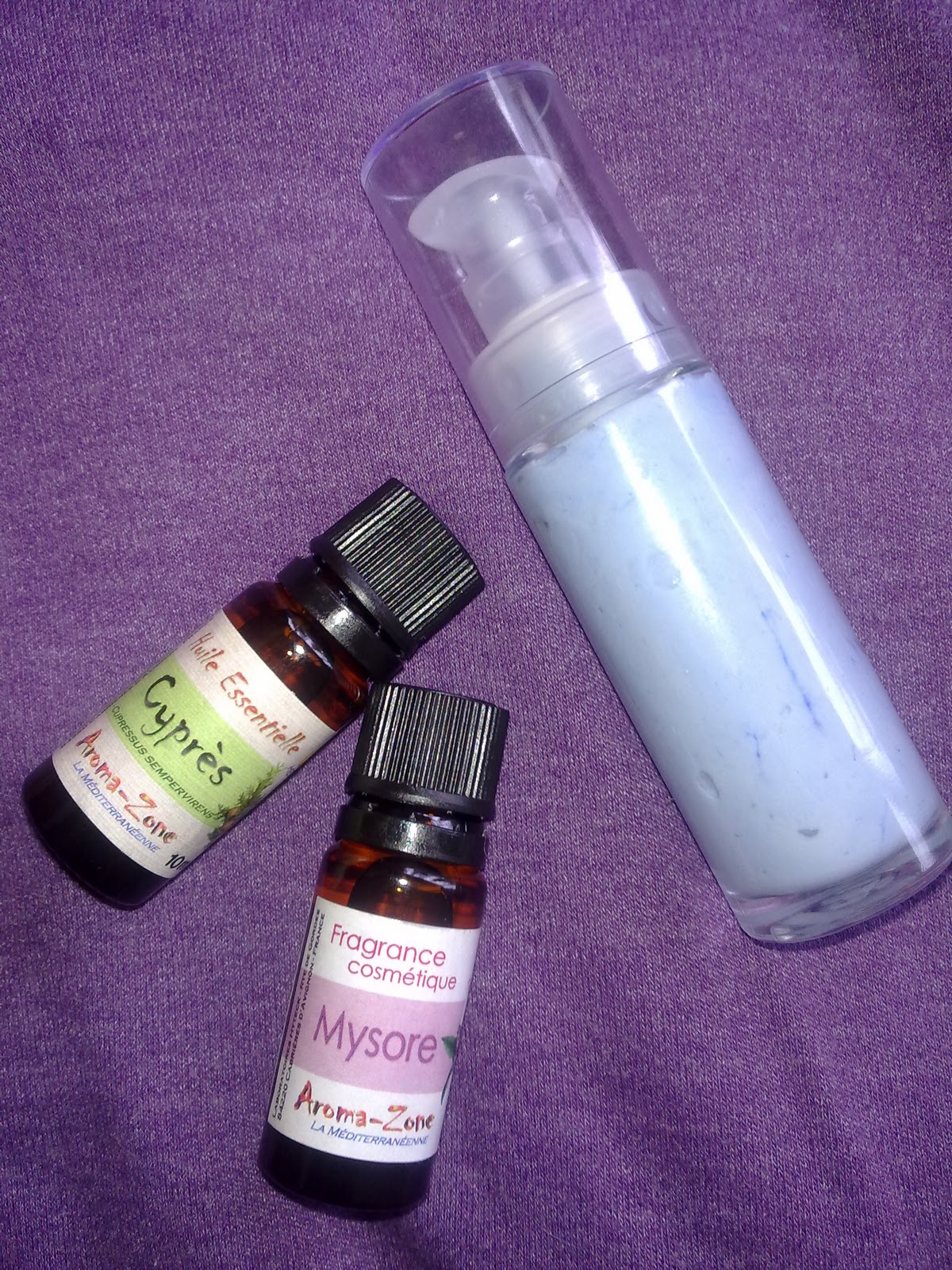 10/ Puis 10 gouttes d'huile essntielle de Cyprès (en agitant bien), parfum frais, masculin, qui se marie parfaitement bien à la fragrance Mysore... Personnellement je trouve ce mélange fort en caractère, tout en restant fin et délicat !