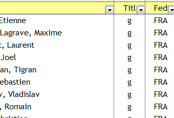 A toutes fins utiles, je vous ai concocté un petit fichier Excel qui regroupe tous les joueurs français de la dernière édition du classement FIDE. Les fonctionnalités du tableur permettent toutes sortes de tris ou d'extractions. C'est beaucoup plus pratique que le format texte d'origine.