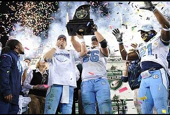 Music City Bowl : North Caroline 30 – Tennessee 27: Ce match est déjà considéré par plusieurs comme un classique des bowls. Une fin de match en 2e prolongation qui nous rappelait le Fiesta Bowl entre Boise State et Oklahoma il y a 4 ans. Le jeu du match revient à Quan Sturdivant (MLB – UNC) qui a intercepté le quart des Volunteers en prolongation. Si vous êtes un fan du Tennessee, soyez rassurés. L’avenir s’annonce rose avec le quart freshman (1ère année), Tyler Bray. Ce dernier a lancé pour 312 verges et 4 Tds mais malheureusement, il a lancé 3 interceptions. Pour ceux qui ont vu le match, j’espère que vous avez apprécié le système de prolongation de la NCAA, qui est de loin supérieur à celui de la NFL.