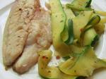 Pour les tagliatelles, il suffit de couper les courgettes avec une mandoline ou un épluche-légumes. Je les ai poêlées à l'huile d'olive deux minutes, puis j'ai mis un tout petit peu d'eau et j'ai couvert pour qu'elles finissent de cuire à la vapeur d'eau. J'ai assaisonné avec le mélange "Olive grove" plusieurs fois évoqués sur ce blog (tomate, ail, origan, oignon, olive...).