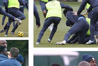 Ca chauffe à Manchester City ! En pleine séance d'entraînement, Emmanuel Adebayor et Kolo Touré en sont venus aux mains après une intervention rugueuse de l'Ivoirien. Des joueurs, parmi lesquels Patrick Vieira ou Mario Balotelli ont dû intervenir pour séparer les deux hommes.
