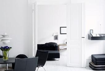 The Egg, the Ant and PK22 are a few of the Danish design icons from the 50's-60's. In this Danish flat you can find the vintage editions side by side, all found on fleamarkets and auctions around the country. To keep the flat from looking like a design store, the owners have also added wooden furniture of unknown design from mainly the same time period. The stringent style is softened up by ceramic vases, sculptural branches, delicate flowers and a deliciously kitsch stag head...