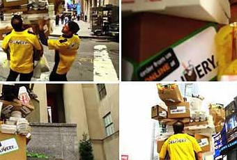 Delivery.com a donc fait appel à l’agence Interference.inc pour sa campagne marketing. Le but est de promouvoir la qualité de son service. Puis qu’ils peuvent livrer n’importe ou et très vite.