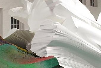 ... Katharina Grosse ne fait pas les choses à moitié. Quand elle occupe un espace, on peut dire sans crainte de se tromper qu'elle occupe l'espace. Si vous êtes galeriste et que vous avez moins de 70 mètres carrés, oubliez Katharina Grosse, c'est pas pour vous. Car Katharina fait dans la démesure, dans le volumineux. Telle le boa sur sa proie, elle étouffe, elle congestionne, elle broie l'espace qui lui est dévolu avec ses installations mêlant matières brutes très brutes, peintures très peintes de partout et un peu d'architecture de ci de là (toujours au 23, rue Quincampoix). Katharina ne rentre pas dans le cadre car il peinerait à contenir la force de sa créativité. C'est pourquoi elle déborde, elle avale les lieux qu'elle s'approprie, Gargantua de l'art, peintre sans frontières physiques. Au MASS MOCA qui n'est pas un café pourri super cher de chez Starbuck's mais le Musée d'Art Contemporain du Massachussets, Katharina a pris ses aises. Et nous, une bonne claque.