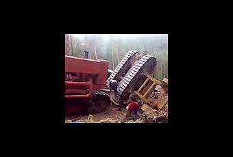 Un tracteur pose-canalisation s'est retrouvé sur le dos. Les ouvriers vont essayer de le remettre sur des deux chenilles mais ils vont oublier un petit détail.