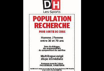 La Belgique vit des jours sombres et moroses. Le dernier conciliateur en date – Johan Vande Lanotte – vient de jeter l’éponge plutôt écoeuré. Sans gouvernement depuis 208 jours, la Belgique va prochainement battre le record d’Europe. Un bien triste record. Une situation qui irrite, peine, fruste la population belge et la ‘Une’ du quotidien La DH / Les Sports résume parfaitement la situation. Une offre d’emploi en bonne et due forme afin de trouver le ‘ Zorro ‘ capable de décoincer la situation. A suivre donc.