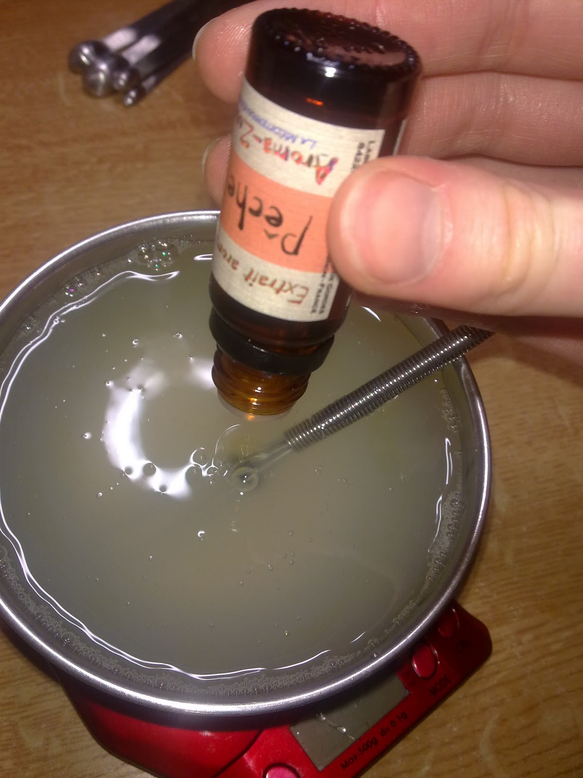 - 1% soit 2.5 ml d' Extrait aromatique Pêche (parfum)