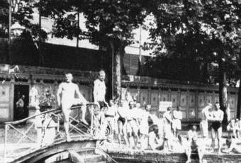 Sur ce document, ce sont des soldats de la 8ème division allemande qui s'ébattent dans l'un des bassins.