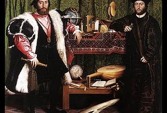 Illustration :Hans Holbein le Jeune (Augsbourg, 1497/98 – Londres, 1543) – Portrait des Ambassadeurs Jean de Dinteville et Georges de Selves – HSB – (207x209) – 1533 - Londres, National Gallery.Quel est-donc cet étrange objet ressemblant à un os de seiche, représenté en position centrale au premier-plan du tableau ? Il s’agit d’une anamorphose. Le tableau était disposé dans une pièce de telle manière que le visiteur en entrant, en avait une vision latérale qui rétablissait la réalité de l’objet, c’est-à-dire sans déformation. Il s’agit d’un crâne humain, expression de la vanité.