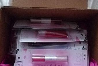 Voici le colis à l'ouverture! Très peu de chichis, juste un petit papier rose au fond du carton et les produits dans leur emballage.
