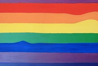 Un petit coup de photoshop la dessus pour montrer ce que ça aurait dû donner avec les vraies couleurs de l'arc en ciel (valeurs trouvées sur wikipedia) et des aplats impeccables :