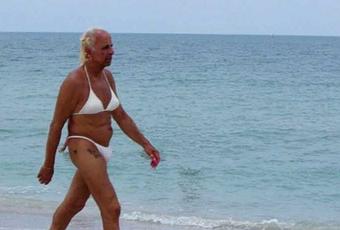 Comme c'est agréable de prendre les embruns tôt le matin! Tellement agréable que, plutôt que d'y aller nu et offenser les passant, monsieur a préféré piquer le bikini de sa femme.