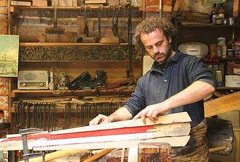 ©Catherine Hédouin Venise est une histoire d'amours (oui au pluriel)de coups de foudre, de fascination,comment résister à tous ses charmes,et particulièrement à celui des Vénitiens... Dans ce billet, j'accompagne Catherine dans le Castello, chez Paolo Brandolisio qui est Remer,sculpteur de Forcole, un artiste. Paolo est né à Venise en 1967. Très jeune, il se découvre une véritable passion pour le bois et passe des heures à fabriquer divers petits objets. C'est à l'âge de 16 ans qu'il "copie" sa première forcola et qu'il décide de la présenter au Maestro Giuseppe Carli. Encouragé par le Maître, il se lance dans la grande aventure...Avec passion, depuis une vingtaine d'années, il crée ce chef d'oeuvre.Paolo dit : "chacune des courbes de la forcola est pensée et a été améliorée depuis le XVe siècle, pour atteindre sa forme actuelle."Chaque pièce de bois est soigneusement choisie, puis le bois brut doit être séché pendant près de 2 ans. La forcola doit être à la fois résistante et souple, pour pouvoir supporter la pression de la rame sans user cette dernière. La forcola est la pièce clef sur laquelle le gondolier prend appui avec sa rame. Sans la forcola, il lui serait impossible de naviguer correctement. Merci à Paolo qui a accepté avec beaucoup de gentillesse et de charme (bien sûr) à lapublication de ce billet et à la parution des merveilleuses photos de Catherine Hédouin.http://www.paolobrandoliso.altervista.org/Calle Corte Rota, 4725Castello, Venezia Quelques renseignements recueillis sur mon vieux guide Gallimard :La "Forcola", le tolet est sculpté dans un seul bloc de noyer. On peut aussi utiliser le cerisier, le poirier ou le pommier.L'aviron est fabriqué à partir d'un seul morceau de hêtre dégrossi, au moyen d'un ébauchoir à deux poignées, de sorte qu'il présente une surface striée côté portage et une surface ronde et lisse dans la partie qui travaille sur le mors.Pièces maîtresses des gondoles, les forcole, aux formes tortueuses présentent des échancrures, les morsi, dans lesquelles se pose le manche de l'aviron. La pièce est dégrossie à la scie, sculptée à la plane et à l'herminette avant d'être huilée.